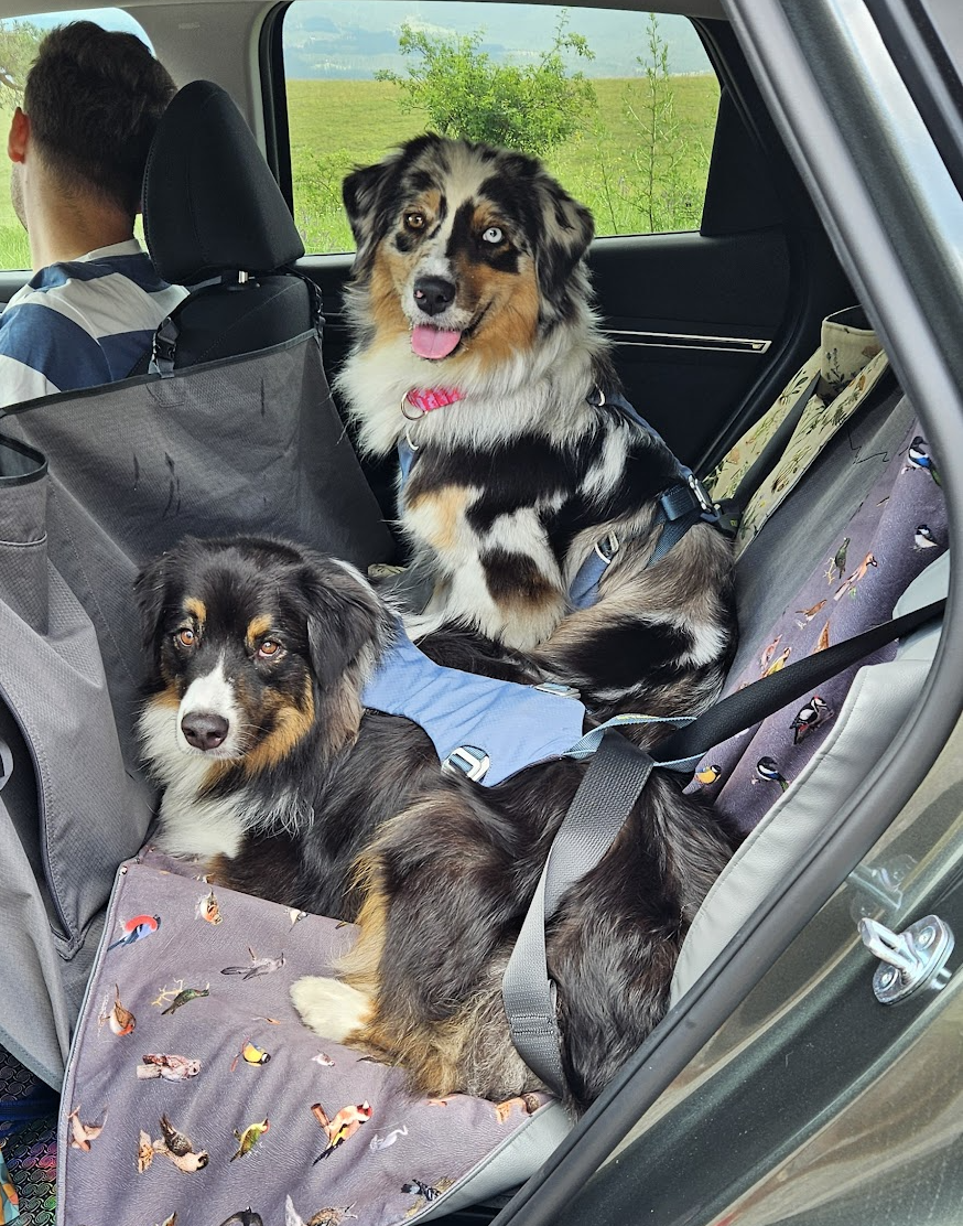 В общей сложности дорога заняла около 9-9.5 часов с проходом границы и частыми остановками, чтобы пройтись и размяться. Собаки ехали на заднем сиденье, спали всю дорогу, иногда смотрели в окно, не выказывая какого-либо беспокойства.
