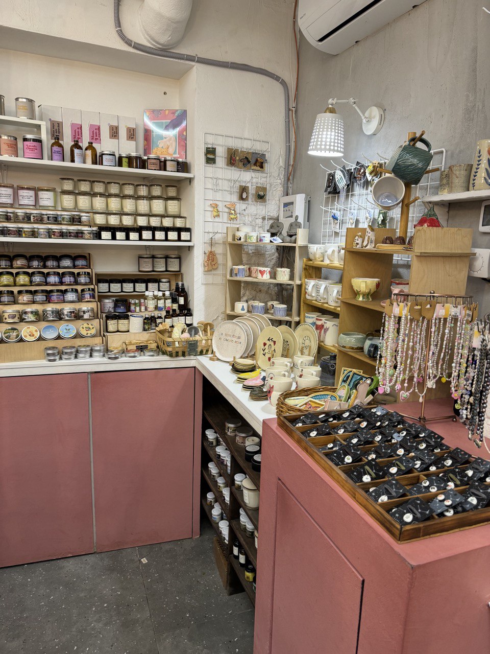 Магазин подарков и сувениров, небольшая лавка радости. Можно с собакой, но места довольно немного и товары, в том числе бьющиеся стоят буквально повсюду.