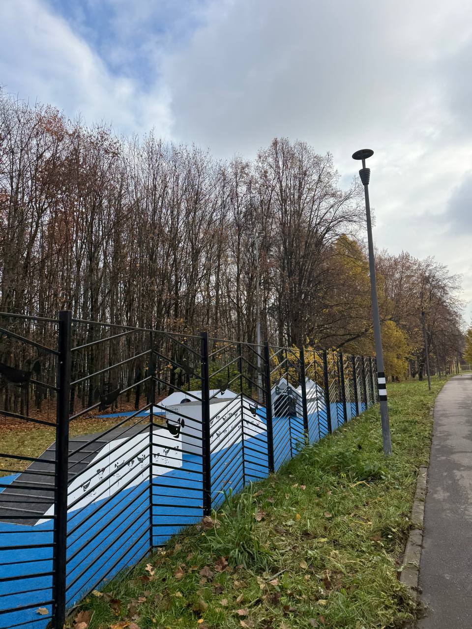 Площадка для игр и тренировок с буями и барьерами разной высоты, кольцами, колёсами, лестницей и змейкой.