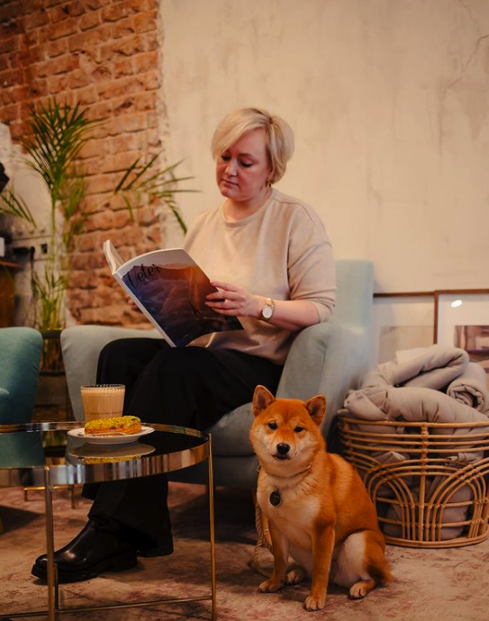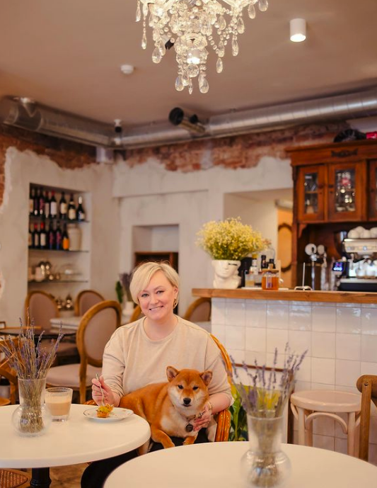 Герои нашей съемки - Ирина и Тори любят прогулки в саду Баумана и с удовольствием решили начать свой выходной день с бранча в Публике. Тори обожает походы в дог-френдли кафе, она настоящая «положительная» собака, куда положили, там и лежит 😄