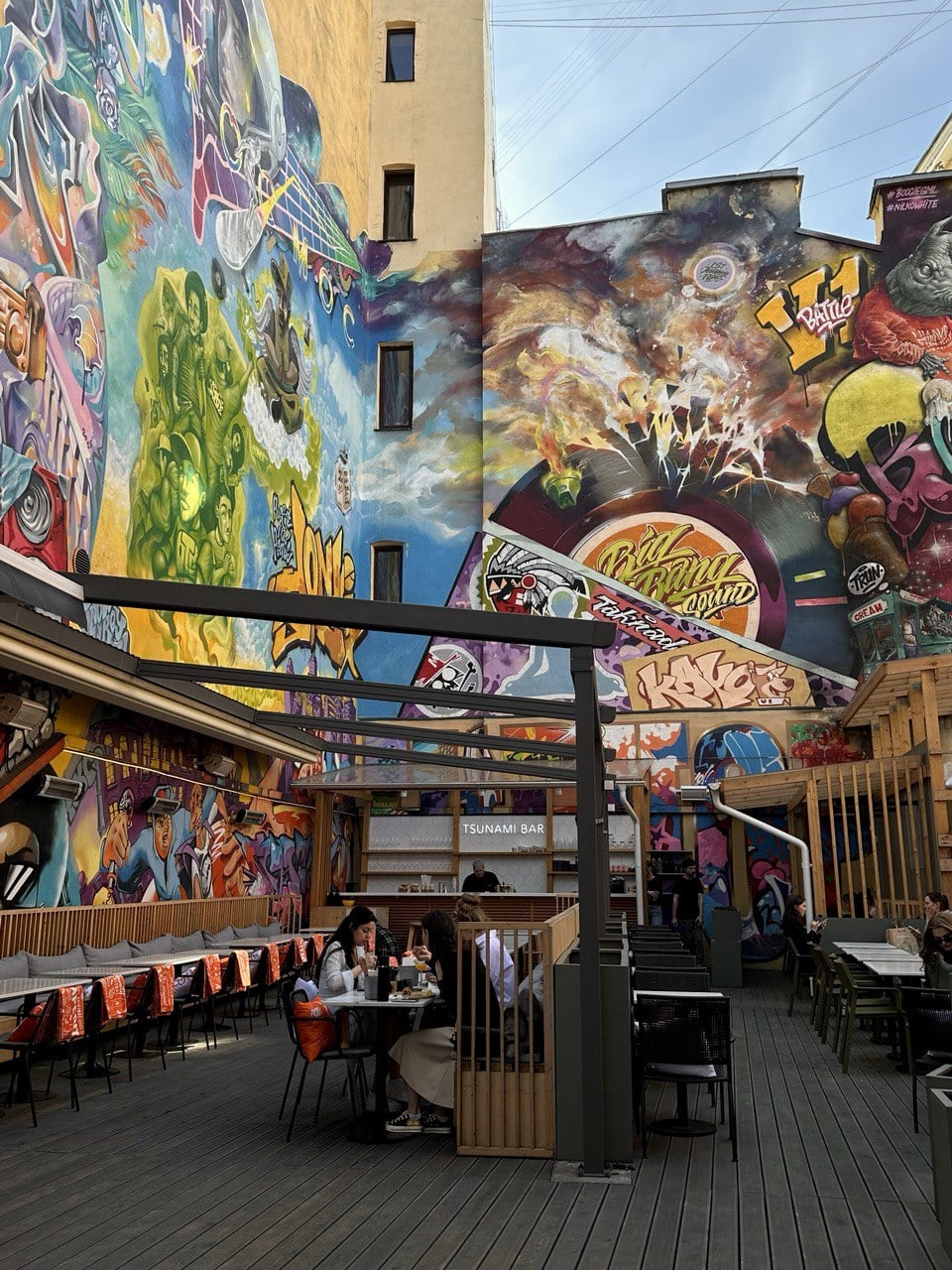 Азиатский бар Tsunami, расположенный в красочном граффити-дворе на Лиговском, где готовят роллы в стиле Никкей и авторские коктейли в необычной подаче.