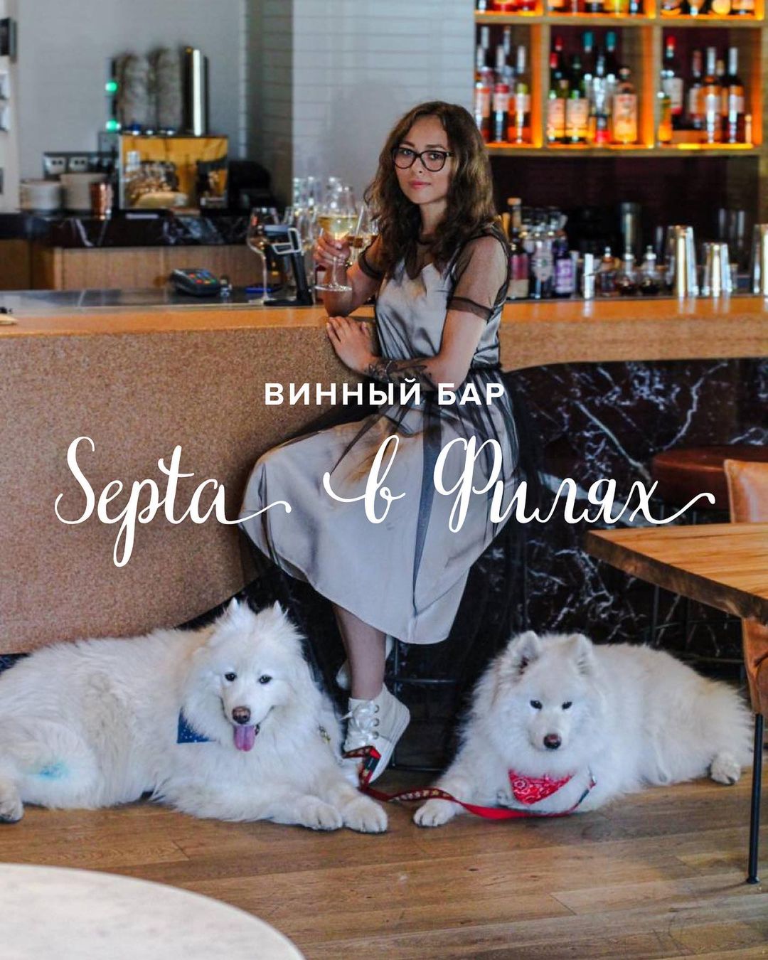 Винный бар Septa с книгами и Дионисом на стене - это сообщество единомышленников, влюбленных в вино! 🍷 Мы вино, конечно, очень любим, но для нас куда важнее отношение к собакам!