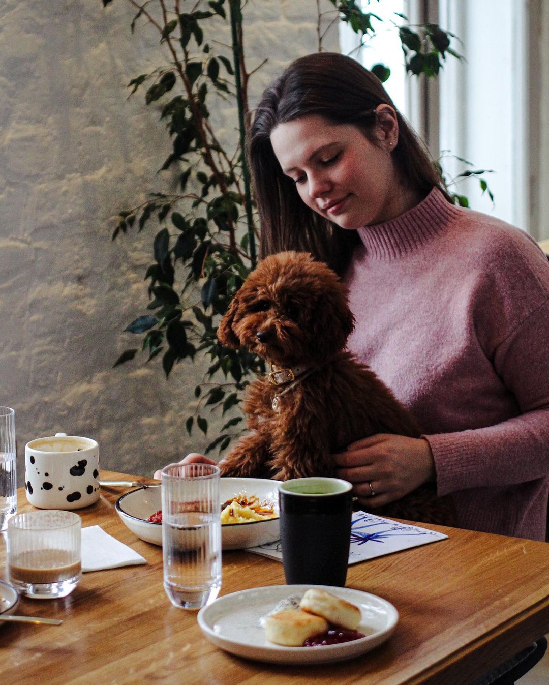 Собак можно без проблем брать с собой, для больших компаний есть отдельная комната с большим столом, место там можно забронировать заранее. В зале достаточно просторно, хотя гостей в выходные много, но столики стоят комфортно.